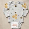 Illustrated in a gentle watercolor style, this design brings a light, joyful, and nature-inspired atmosphere. The combination of warm honey tones, soft pastels, and playful elements creates a soothing yet lively look—perfect for baby textiles and handmade creations.