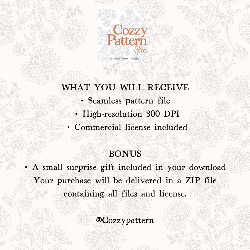 Seamless pattern delivered in high resolution (300 DPI) for excellent print quality.