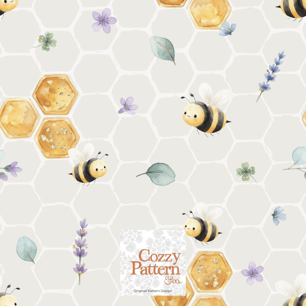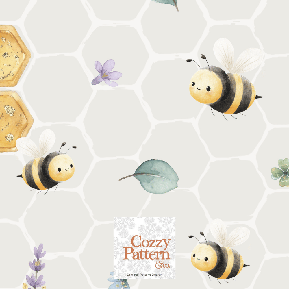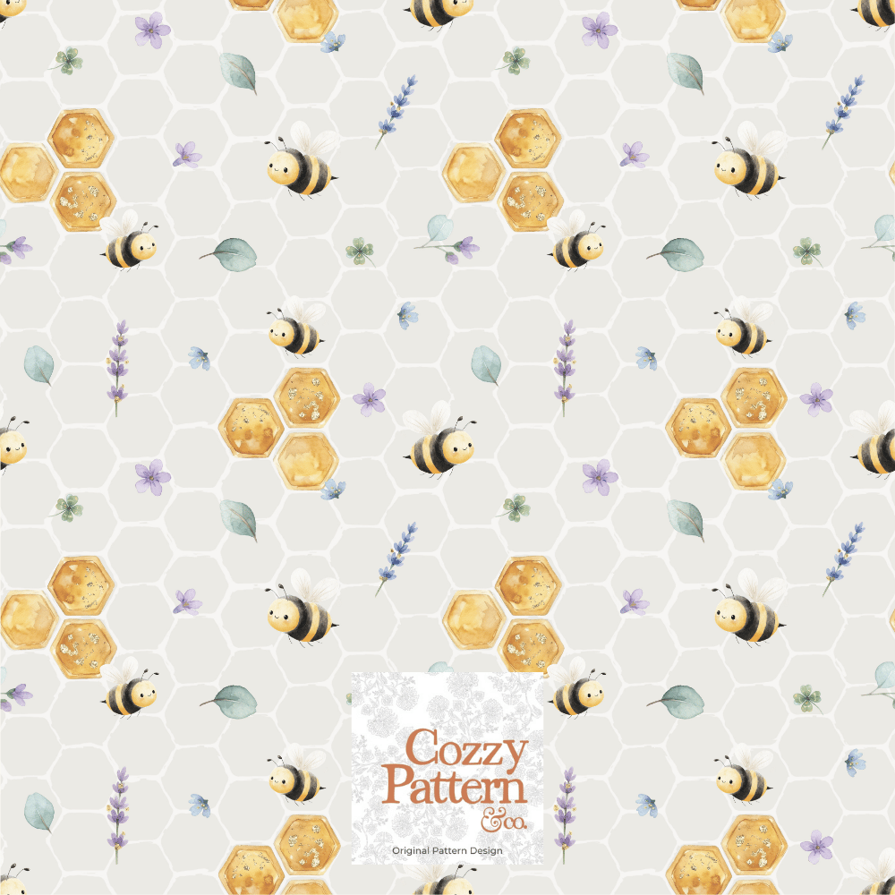 Honeybee & Honeycomb Seamless Pattern P8 b – Sweet Floral Nursery Watercolor Design