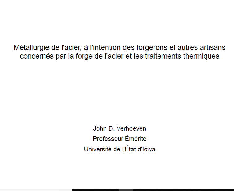 Métallurgie de l'acier, à l'intention des forgerons et autres artisans concernés par la forge de l'acier et les traitements thermiques