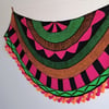 The result is a colourful shawl, in bold neon colours that are reminiscend of the 1980s. It is also a lovely mixture of colours, textures and knitting directions, i.e. a bit of a challenging knit and NOT a beginner pattern.