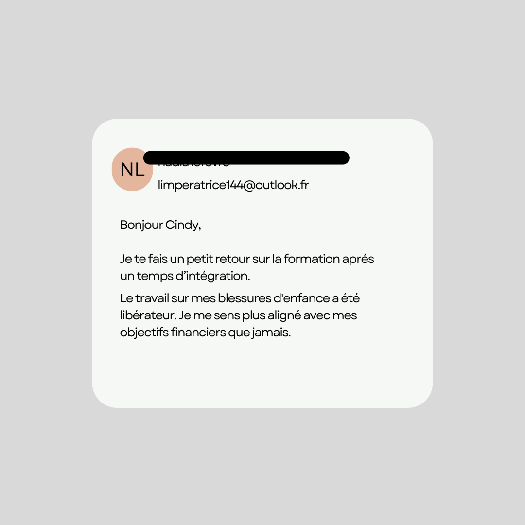 - Guérison des Blessures d'Enfance : Découvrez comment vos expériences d'enfance affectent votre relation avec l'argent et apprenez des techniques de guérison pour libérer ces blocages.
