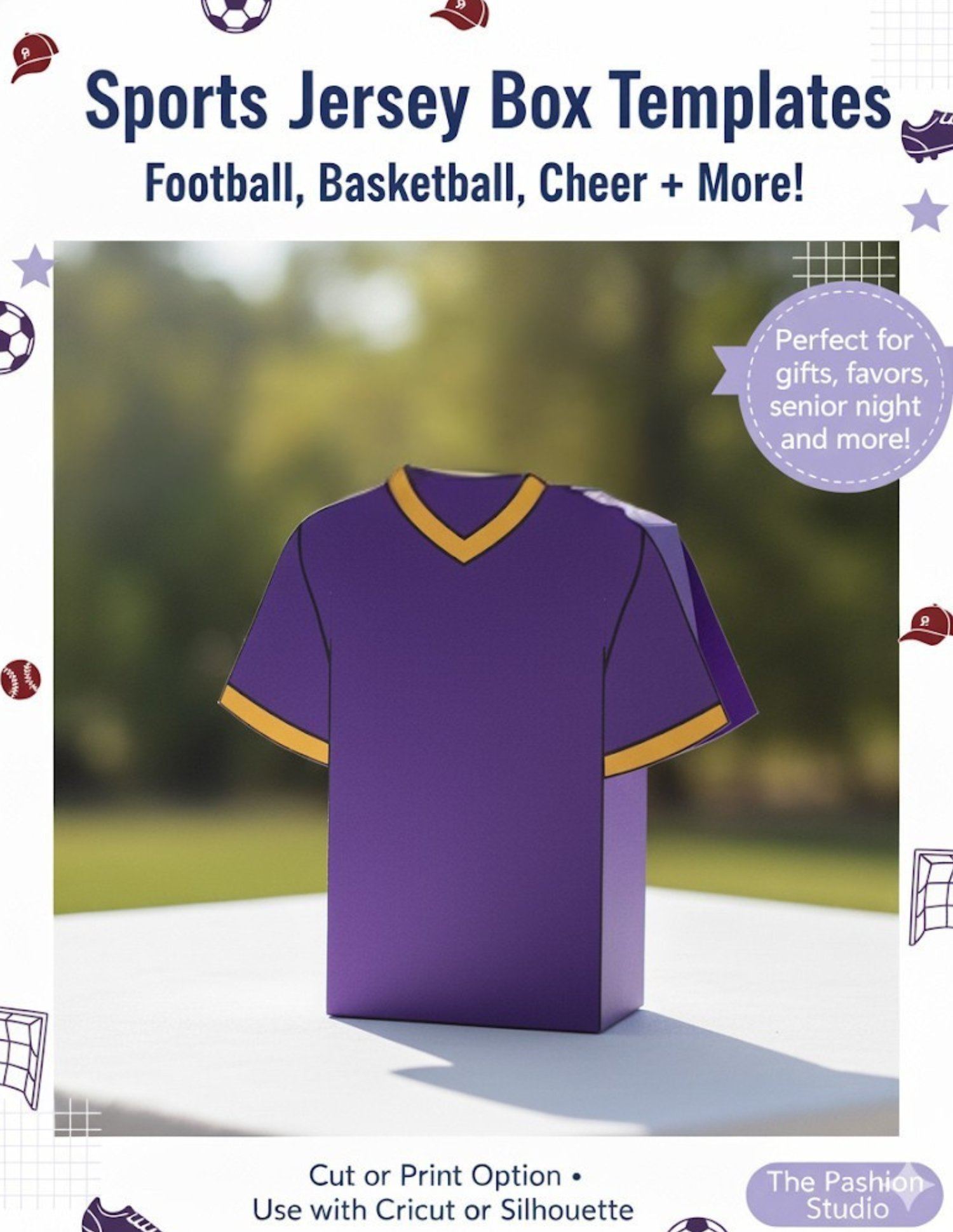 Kick up your creativity with this Soccer Jersey Box template! Personalize it for your favorite team, player, or event — perfect for favors, gifts, and decorations. Compatible with Cricut, Silhouette, or printable assembly.
