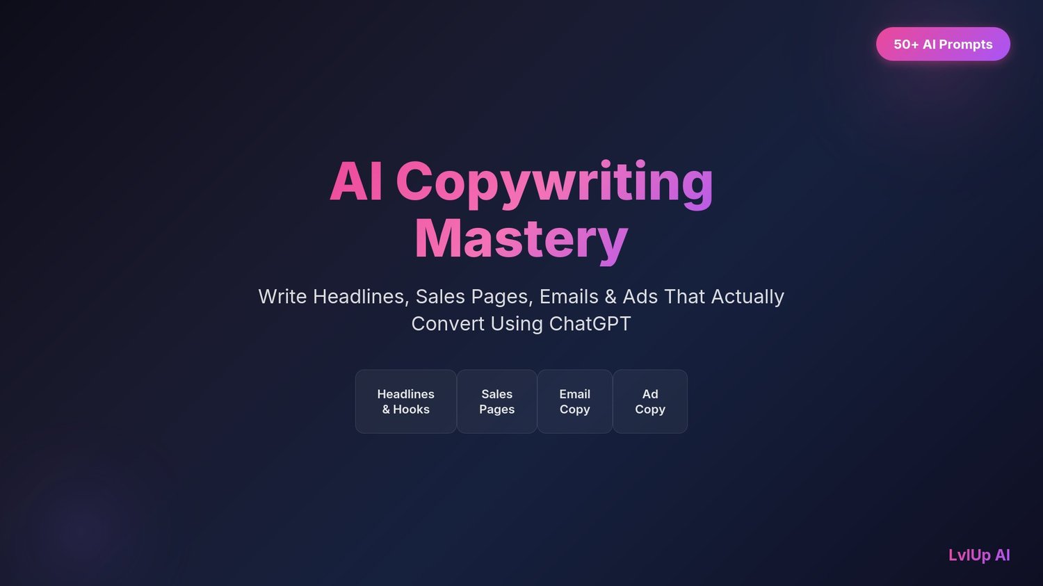AI Copywriting Mastery gives you 50 battle-tested ChatGPT prompts that turn AI into your personal copywriting team.
