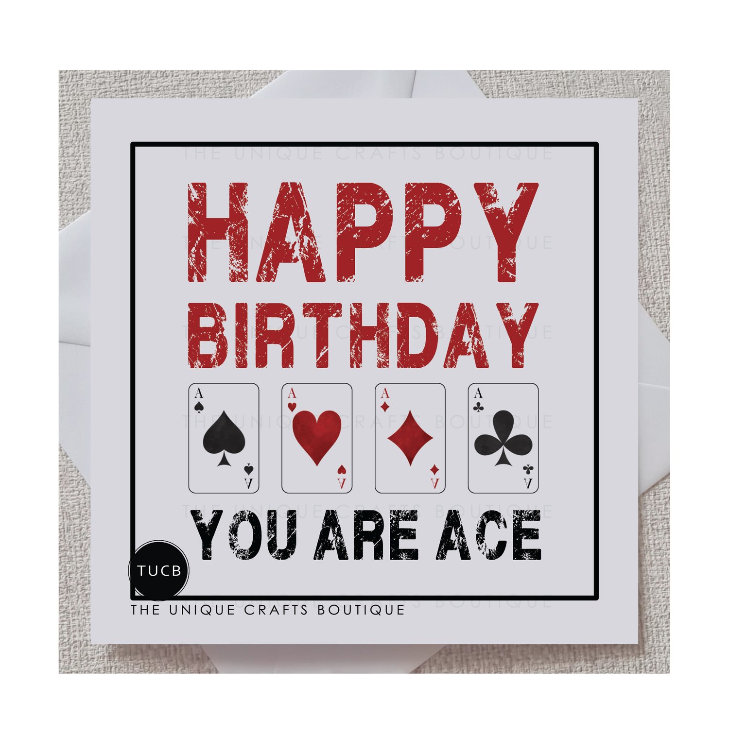 Printed with a hand-drawn set of Ace cards and displaying the message 'Happy Birthday - You Are Ace'. This card is a certain to make your loved one smile.