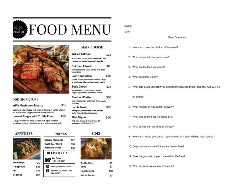 Being able to read a menu and order food consists of cognitive skills required for many everyday tasks.
