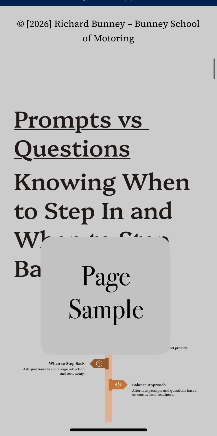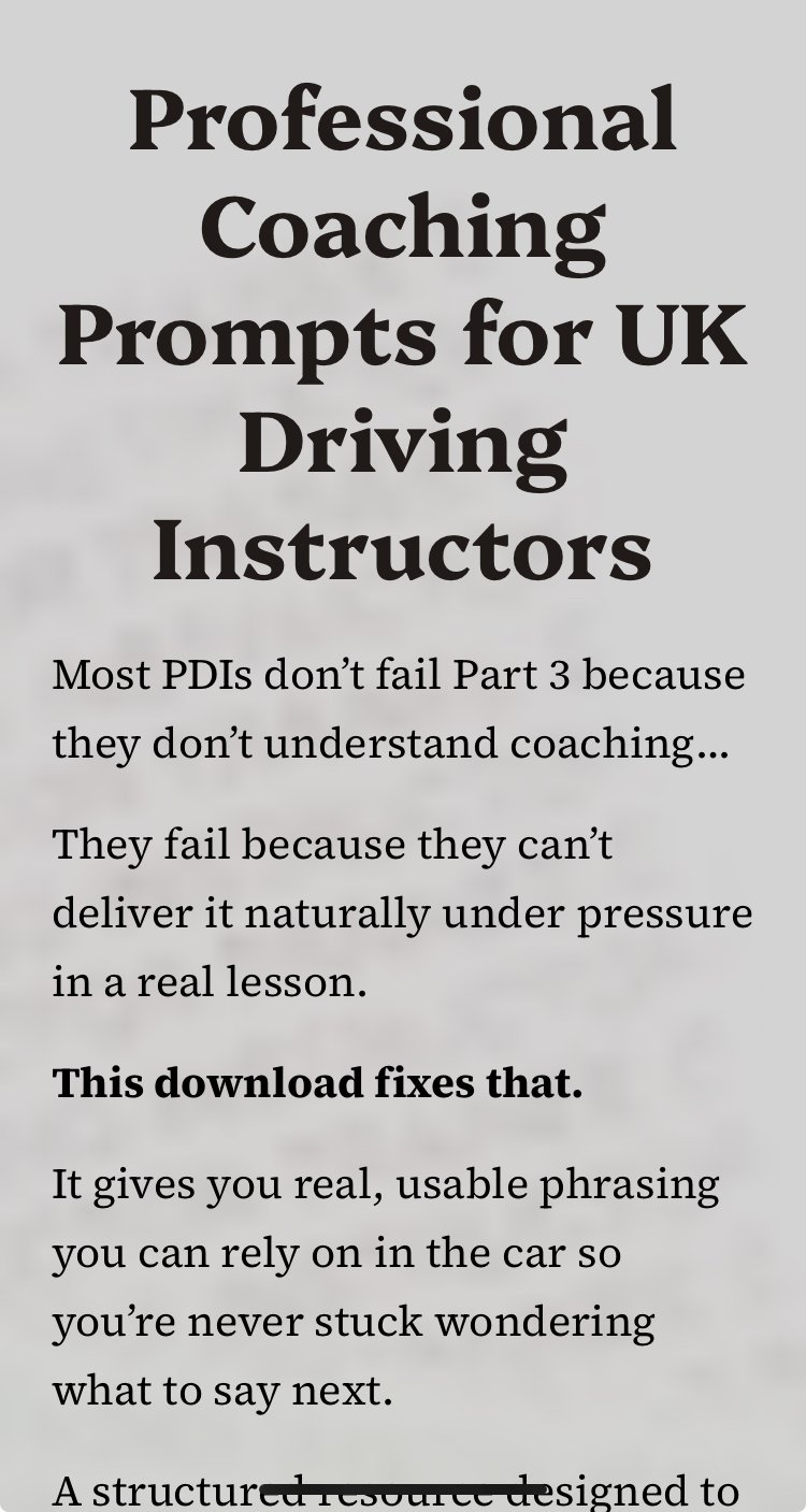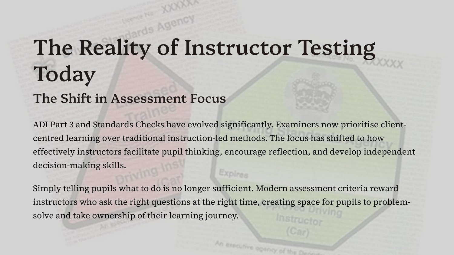 PDI to ADI - Client Centred Instructor Coaching Prompts. plus Bonus features