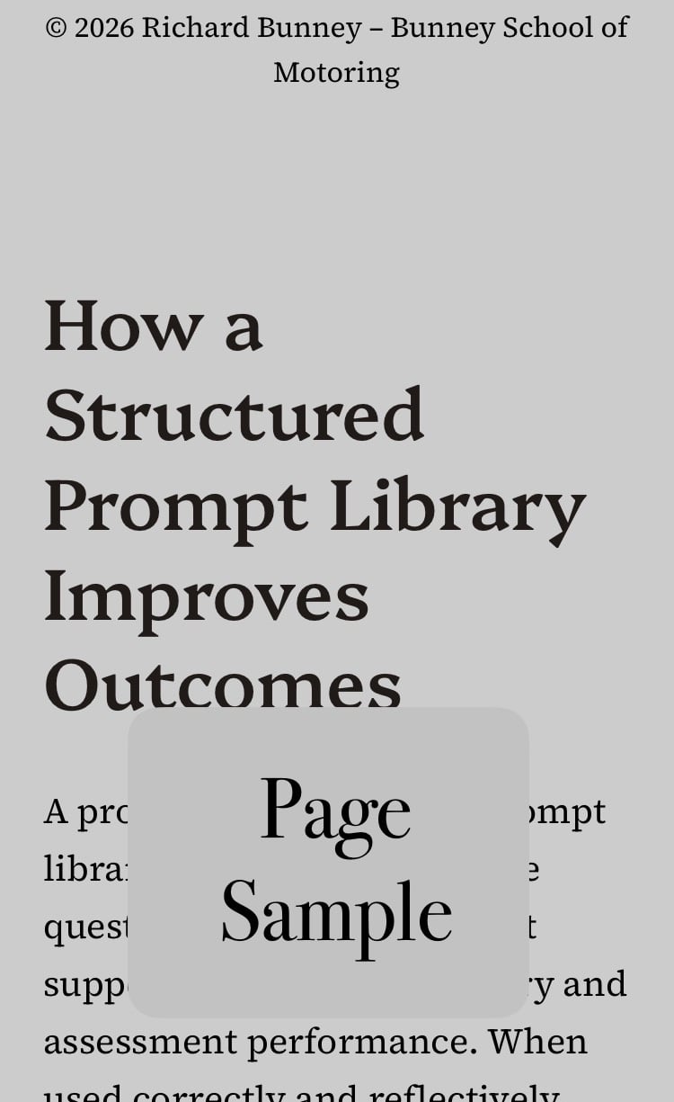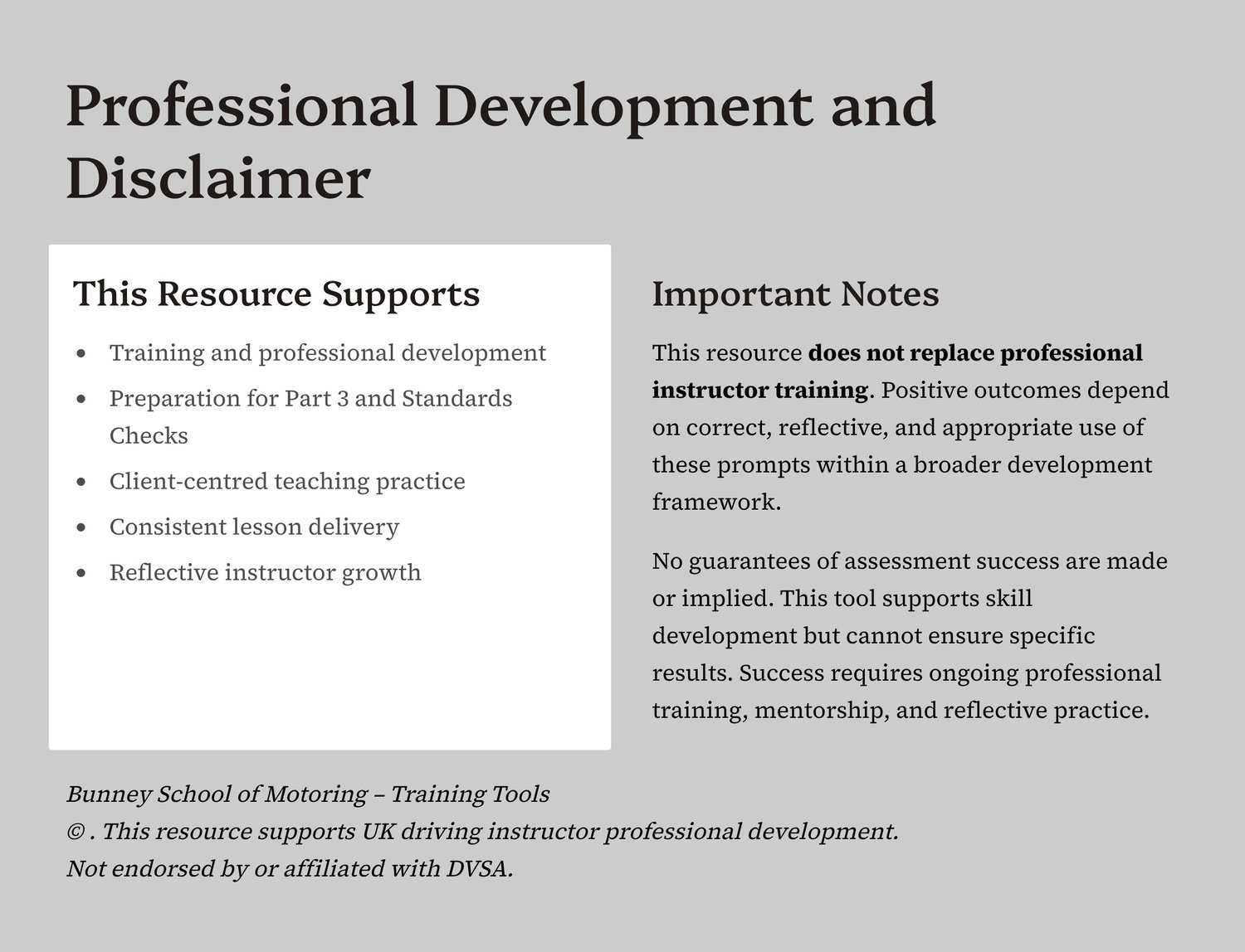 These materials are provided for educational and informational purposes only. Bunney School of Motoring accepts no liability for any loss, damage, or outcomes resulting from the use or misuse of these materials.
