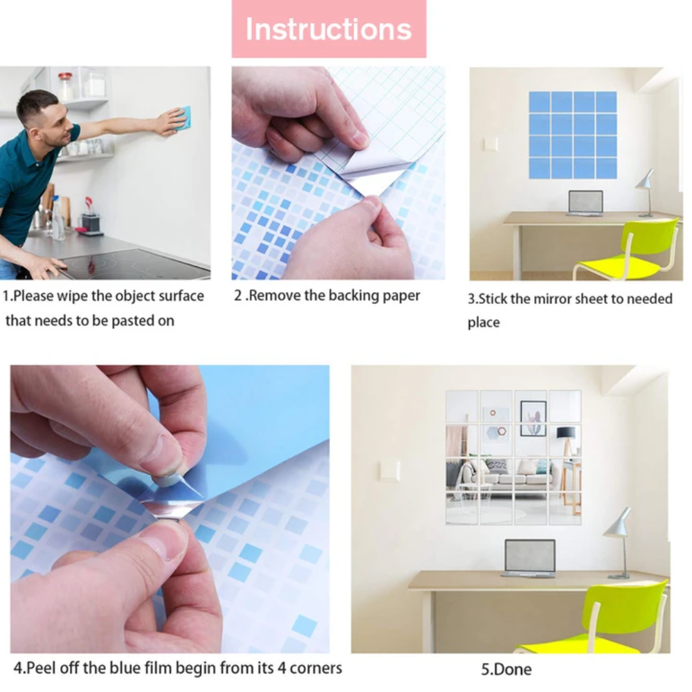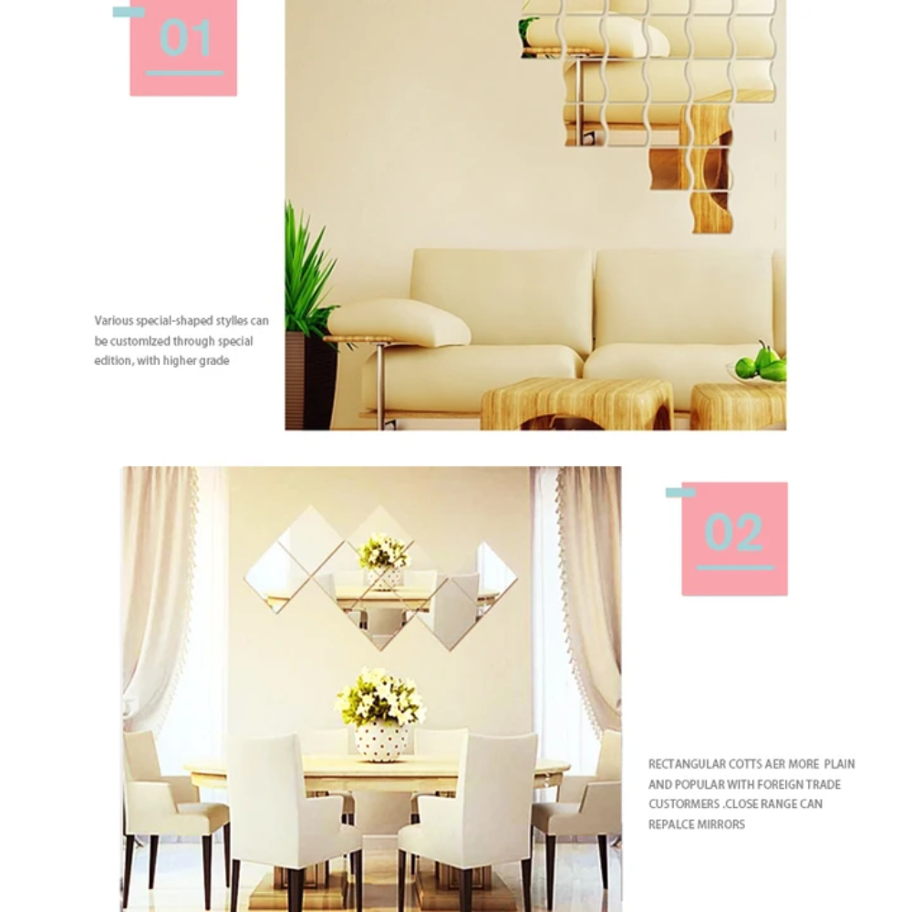 Modern 3D Self Adhesive Mirror Tile Square Wall Stickers, Square mirror wall stick creative home decoration combination movable mirror stick. his is a decorative mirror, basically, be a beautification effect. After the paste, tear the protective film on the surface. The finished product is bright, but try not to touch or rub it. The mirror is not wear-resisting!