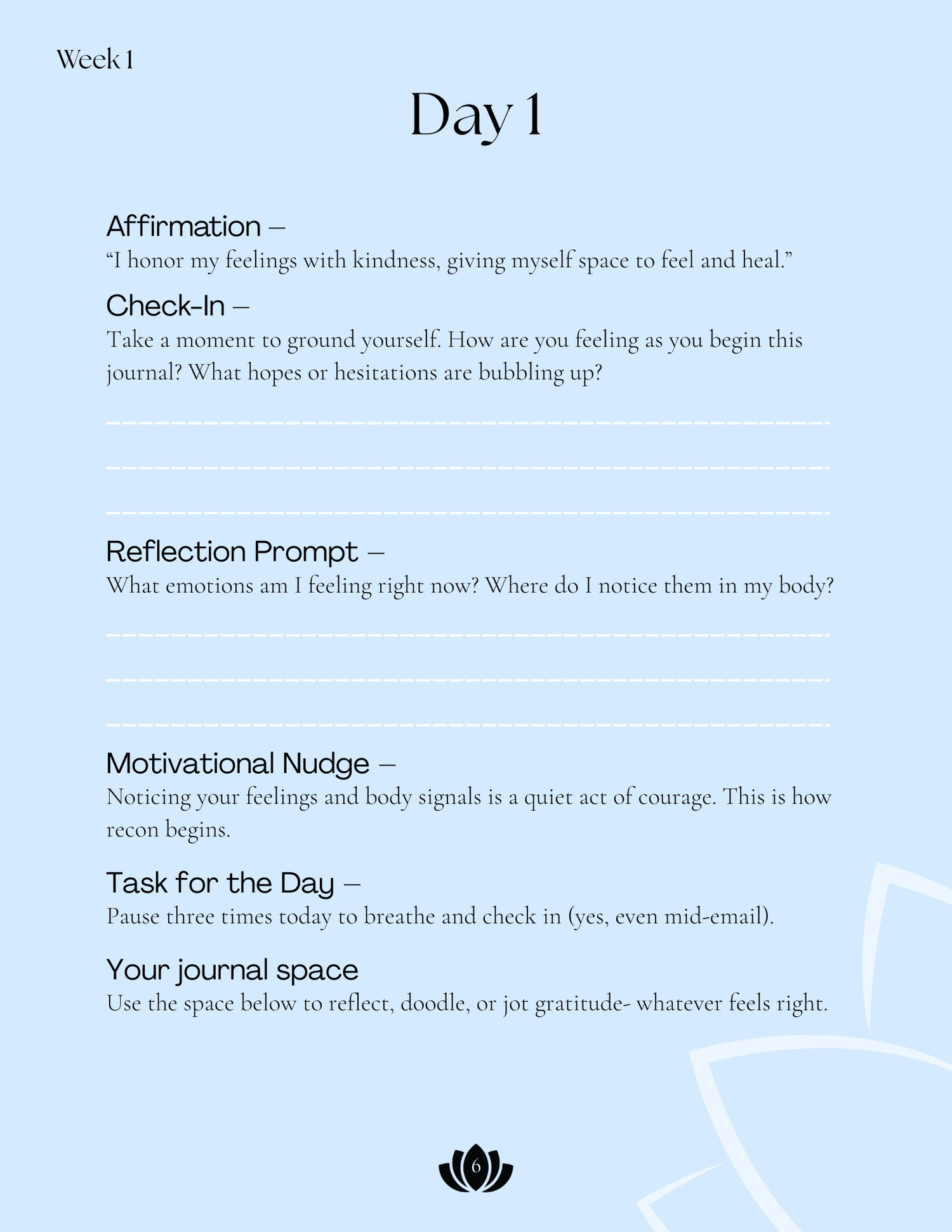 This 30-day Burnout Recovery Journal is basically a gentle reset for your mind, body, and heart. It gives you simple daily prompts, calming breathing exercises, affirmations, and small reflective check-ins to help you slow down, breathe, and feel like yourself again.