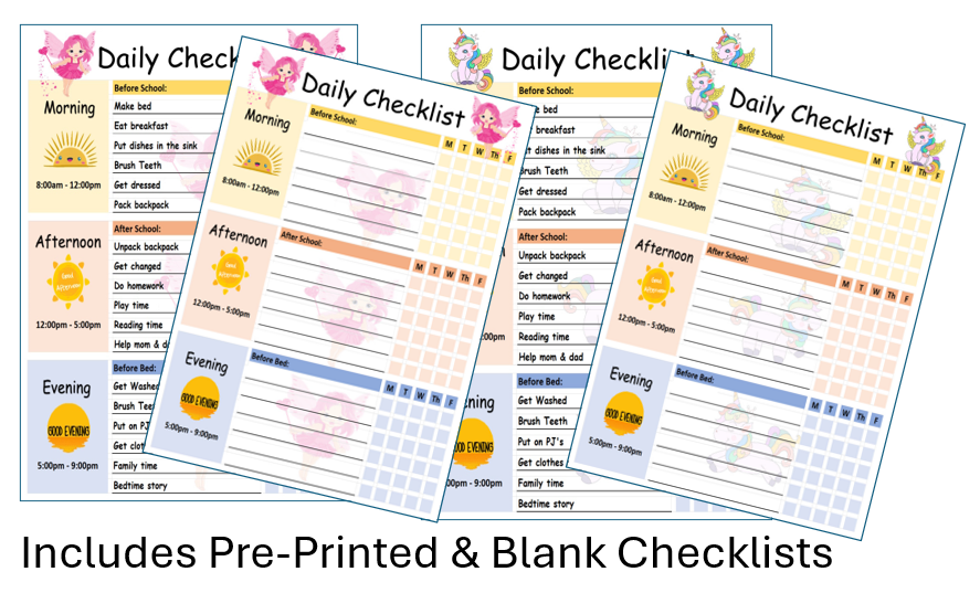 Kids Pony & Fairy Checklist, Responsibility Chart, To Do List, Chore Chart, Printable PDF, Daily Routine Planner