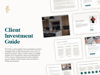 This Investment Guide is the best way to respond to new client inquiries to share your company values, processes, and rates. A free Canva account makes it easy to update this document to your brand colors and styles and your portfolio photography will bring this template to life! We've already included client-friendly explanations of the interior design business, insightful service details, and informative frequently asked questions and answers.