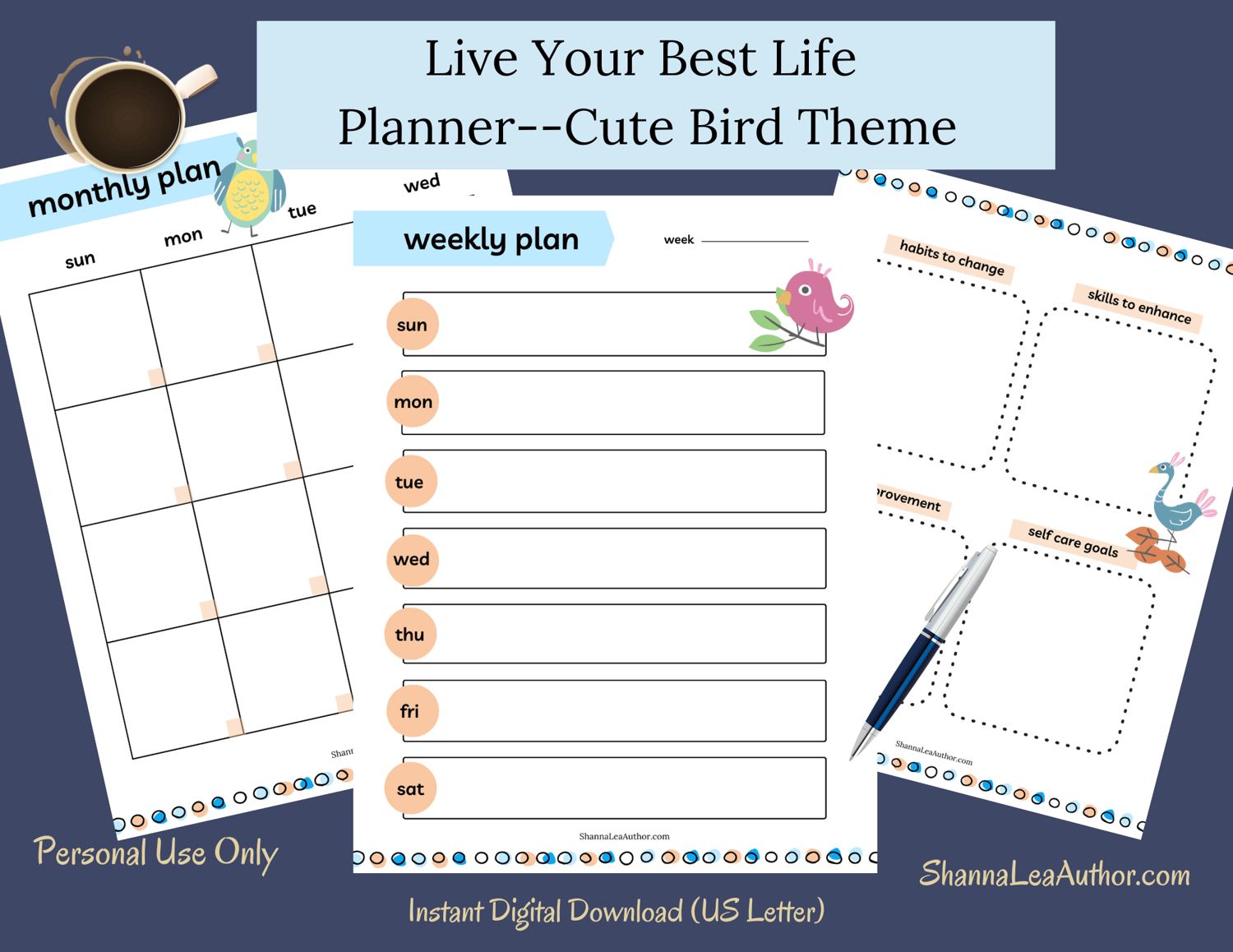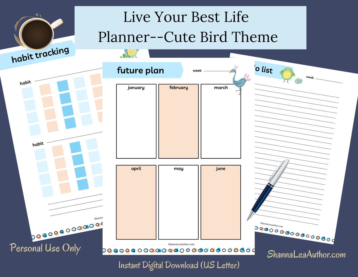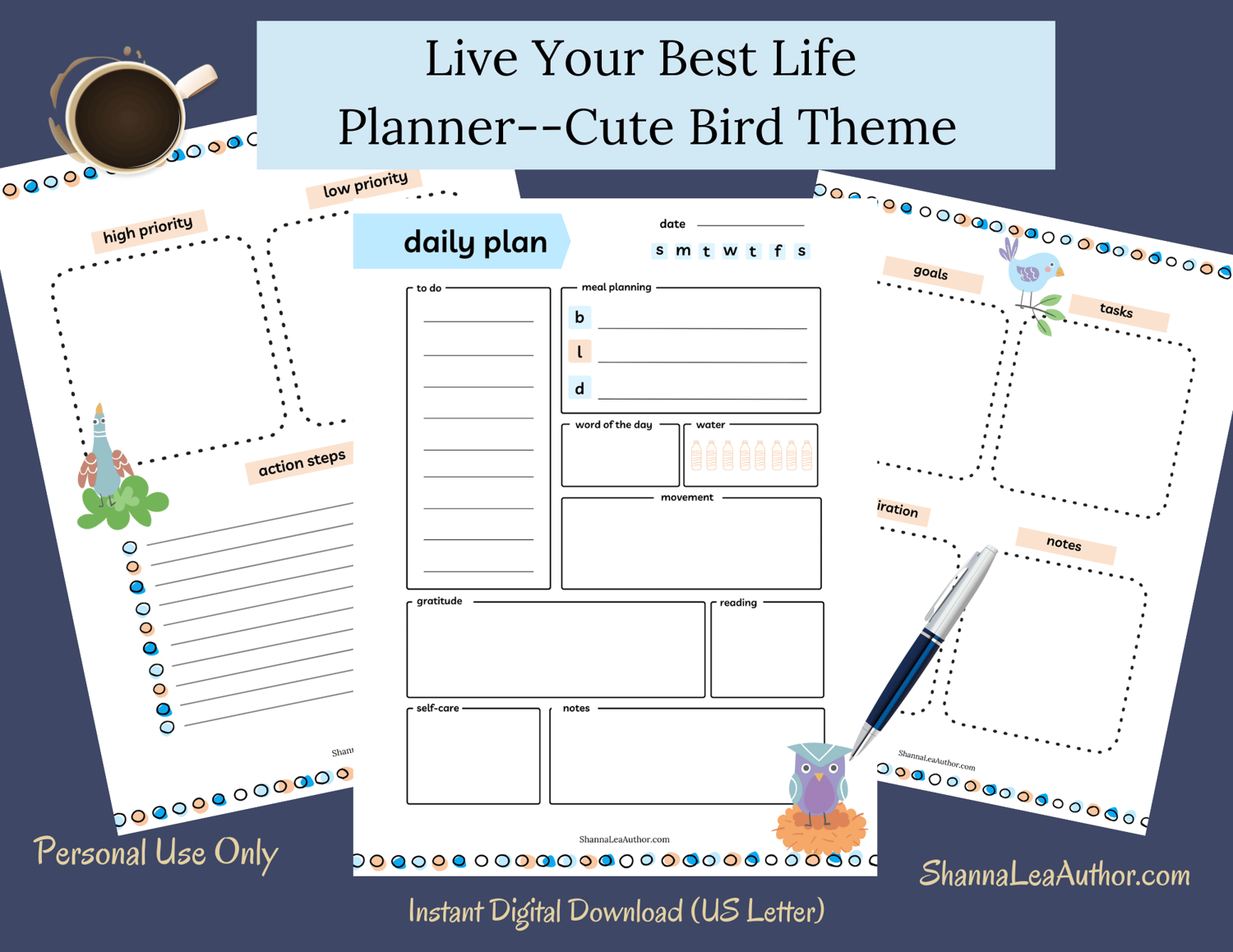 Live Your Best Life Planner—Cute Bird Theme