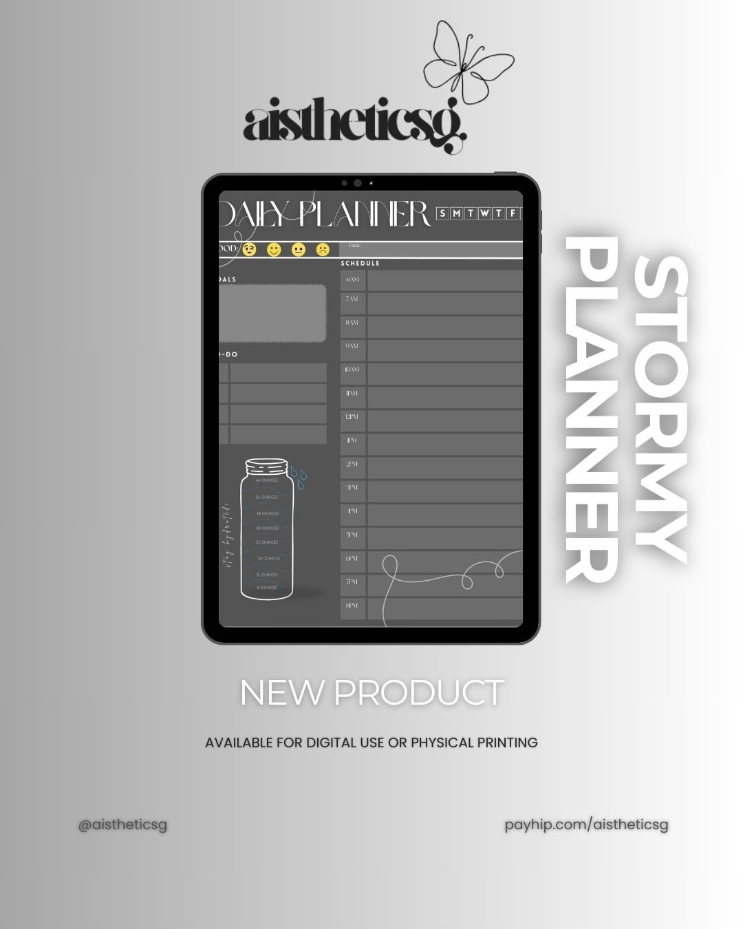 The Stormy Daily Planner is your all-in-one space to organize your day, track your mood, crush your goals, and stay hydrated—with a moody, aesthetic vibe that makes planning actually fun.