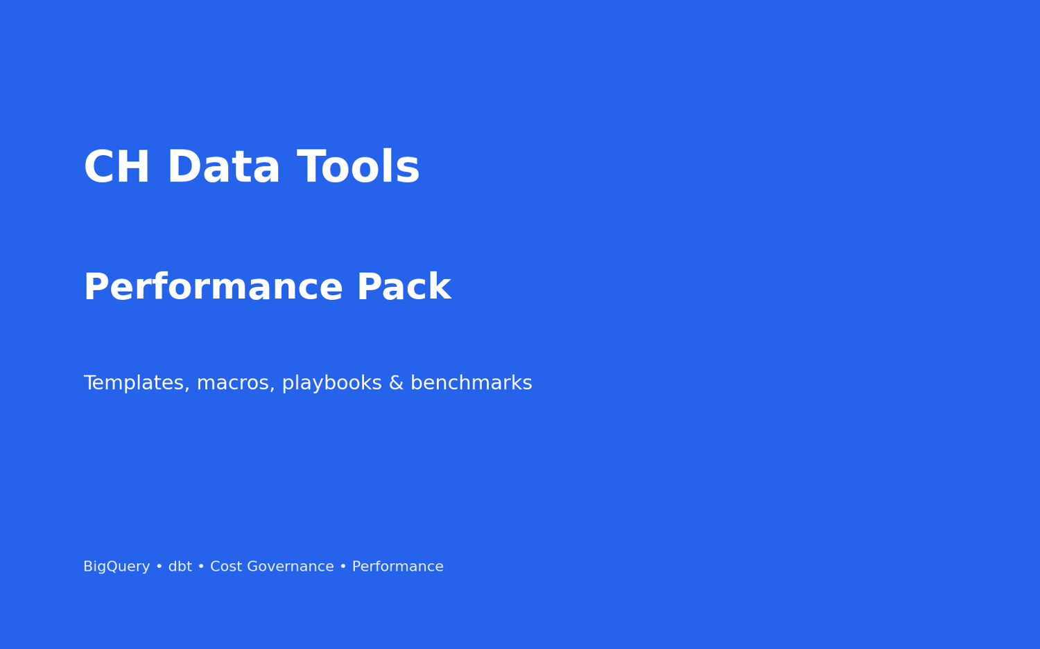 CH Data Tools — dbt + BigQuery Performance Pack (Solo License)