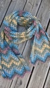 The scarf measures 28 cm / 10.5 inches wide and 175 cm / 68 inches long