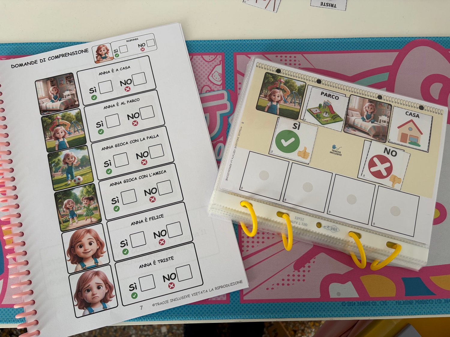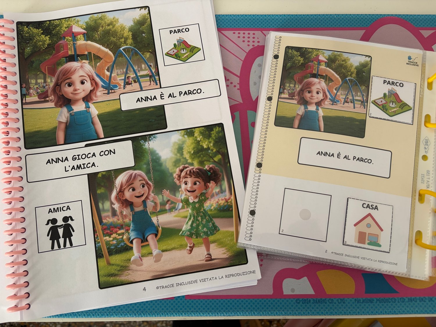 Un quaderno manipolativo in cui il bambino può partecipare attivamente all’attività utilizzando simboli e immagini da ritagliare e posizionare.