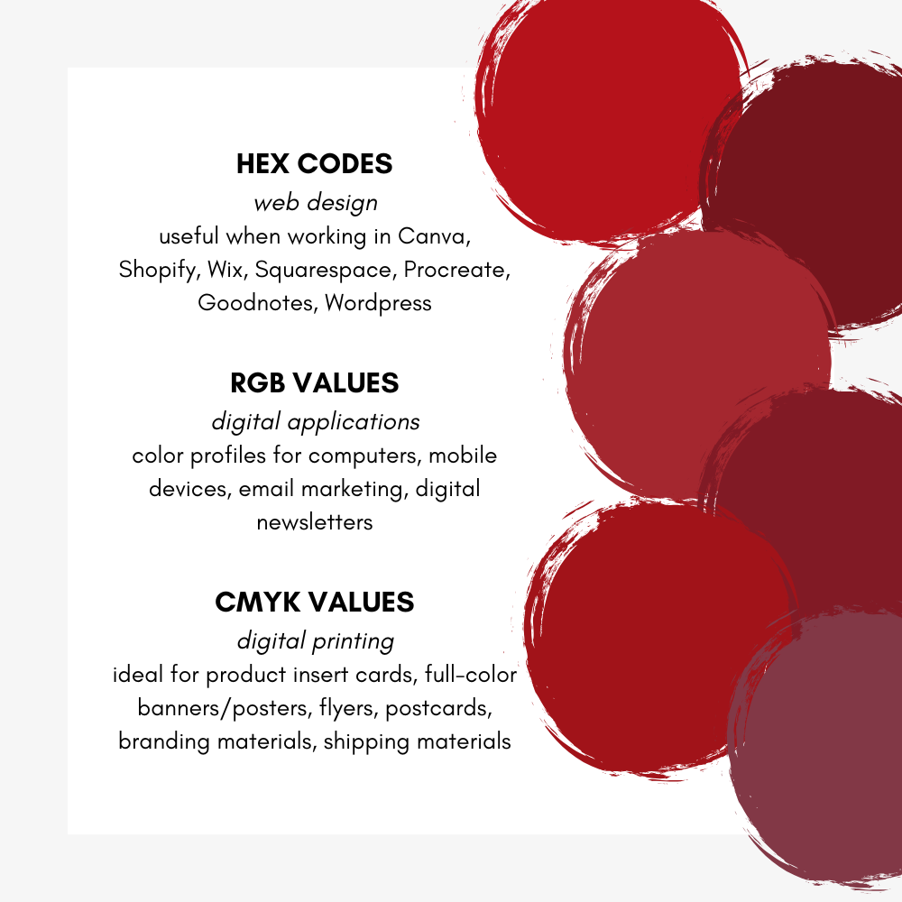 + Detailed Hex Codes, RGB, and CMYK values for each color