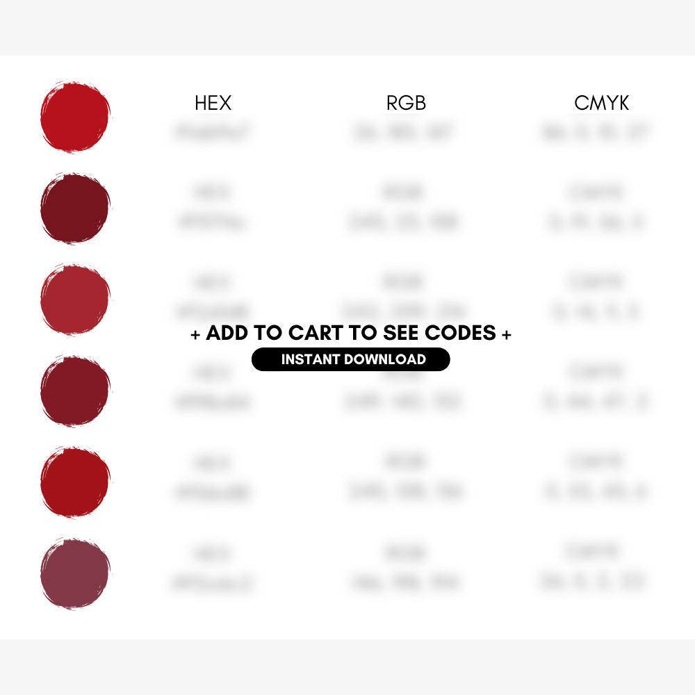 Introducing the Cherry Burst Color Palette – a captivating collection of rich red shades designed to elevate your branding and marketing materials. This moody color palette, featuring stunning hues like crimson, berry, rouge, scarlet, and wine, is perfect for small businesses looking to create a memorable impression. Ideal for Valentine's Day campaigns, this versatile kit provides HEX Codes, RGB, and CMYK values, ensuring seamless integration across print and digital platforms.