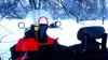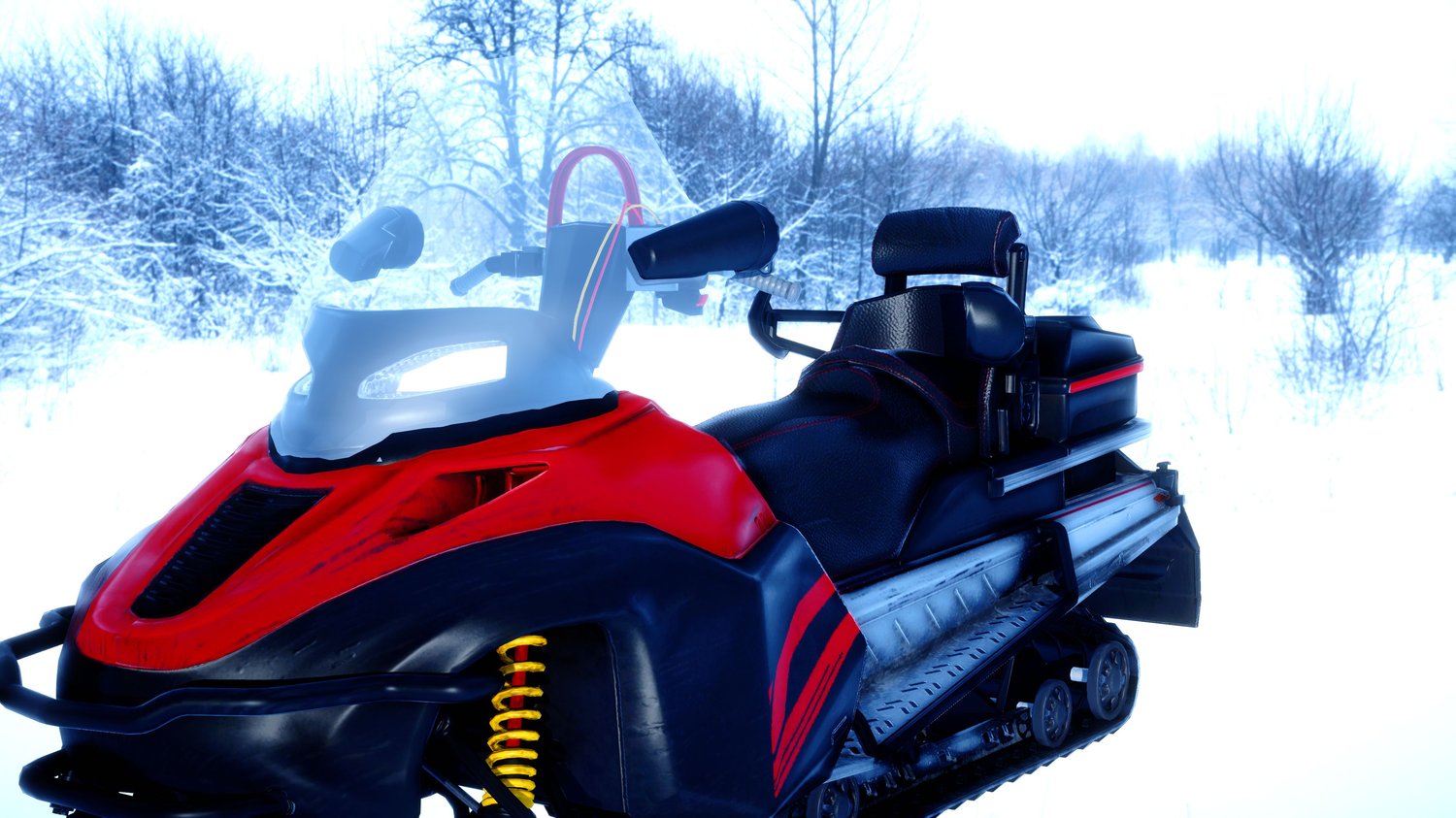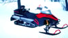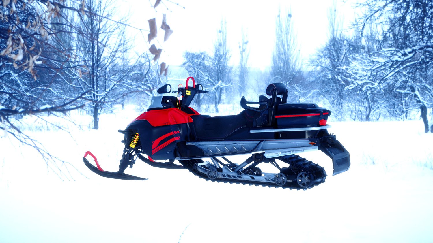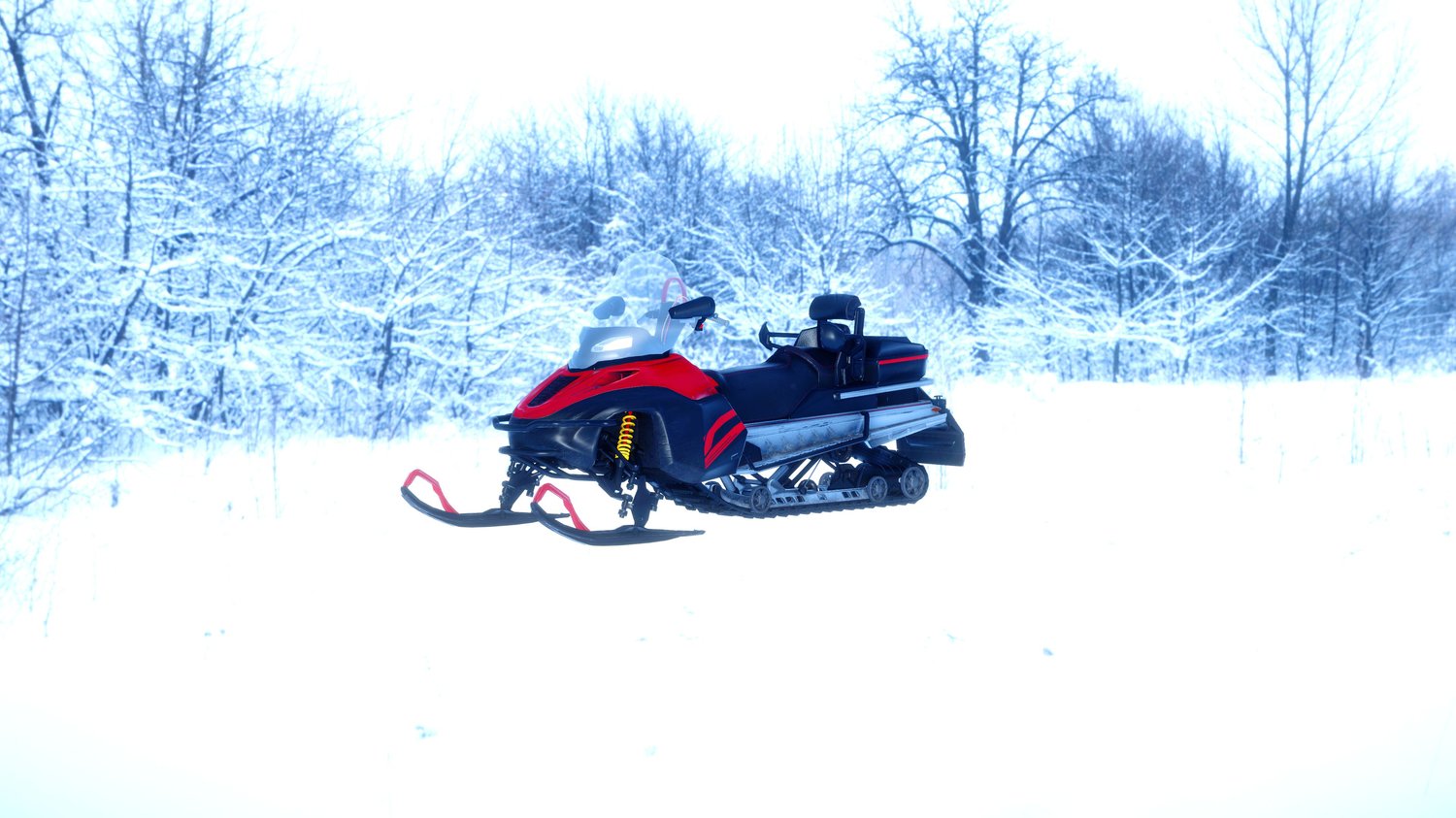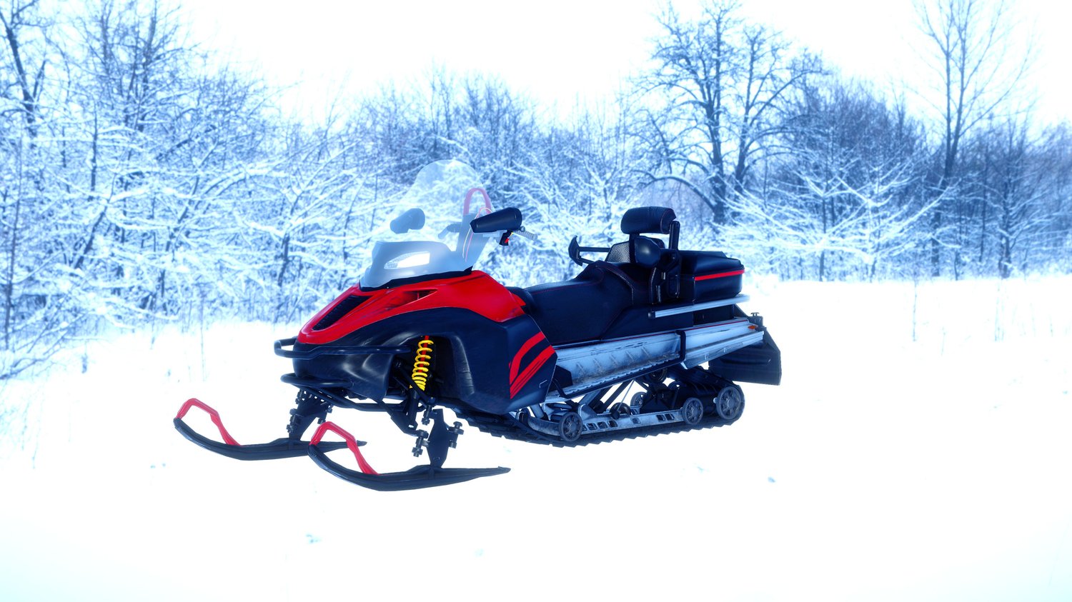 A snowmobile, also known as a snow machine, is a vehicle designed to operate on snow-covered terrain. With rear traction through a track with cleats for stability and front skis, it provides stable handling in snowy conditions. Typically equipped with rubber tracks, some modern models use Kevlar tracks to withstand use in water, ice, and snow. Initially powered by two-stroke gasoline engines, many have been adapted to four-stroke engines fueled by ethanol.