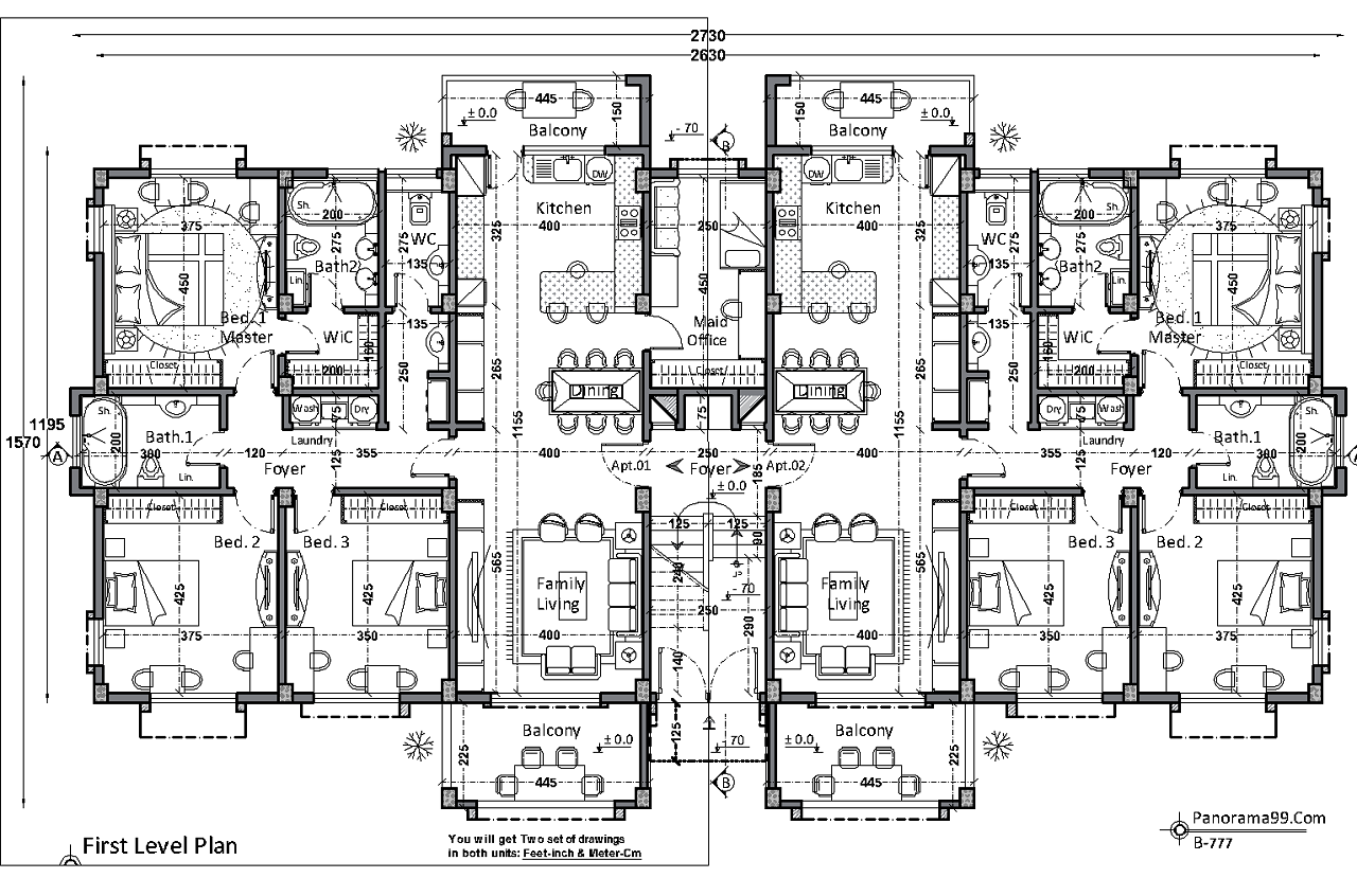 2- You will get Two sets of detailed drawings as PDF file, in both units (Feet-inch & Meter-cm).