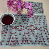 The placemat & coaster are worked in mosaic garter stitch.
