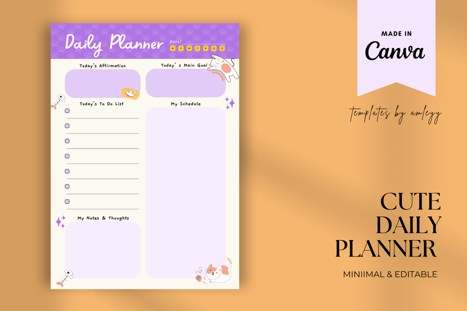 FREE Cat Themed Cute Daily Planner | Editable Canva Template