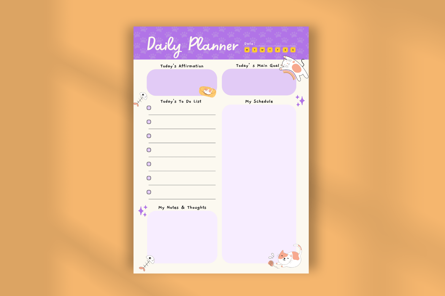 Brighten your day with this FREE Cat-Themed Cute Daily Planner! Designed for cat lovers of all ages, this charming and playful planner helps you stay organized while adding a dose of feline cuteness to your routine.