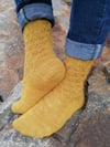 The Darling Buds of May sock pattern was first published in 2013 and was titled 'Oi ihana toukokuu' in Finnish. It was published as two separate patterns, one for sport weight yarns (54 sts) and the other for fingering weight yarns (66 sts). This is a fully revised and extended version of the two patterns, including a few modifications compared to the original pattern.
