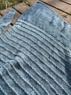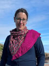 The shawl consists of stripes of stocking stitch, separated by rows of star-like Estonian gathered stitches and finishes with a large wedge created by easy short rows (no wraps or turns). The textures remind me of the cuts of an archeological dig which help archaeologists understand the context for what has happened to a setting through history. Spending quiet time reflecting as we knit on what has contributed to our own layers, contexts and strata is probably no bad thing either.