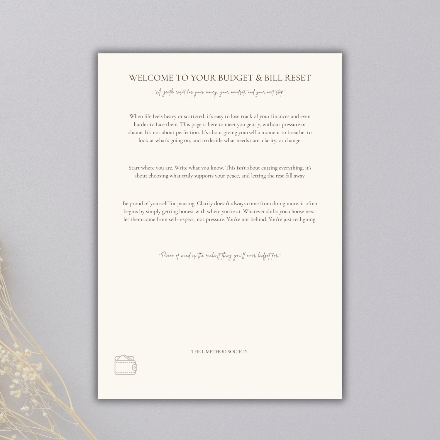 Budget & Bill Reset – Guided Template (Editable PDF)