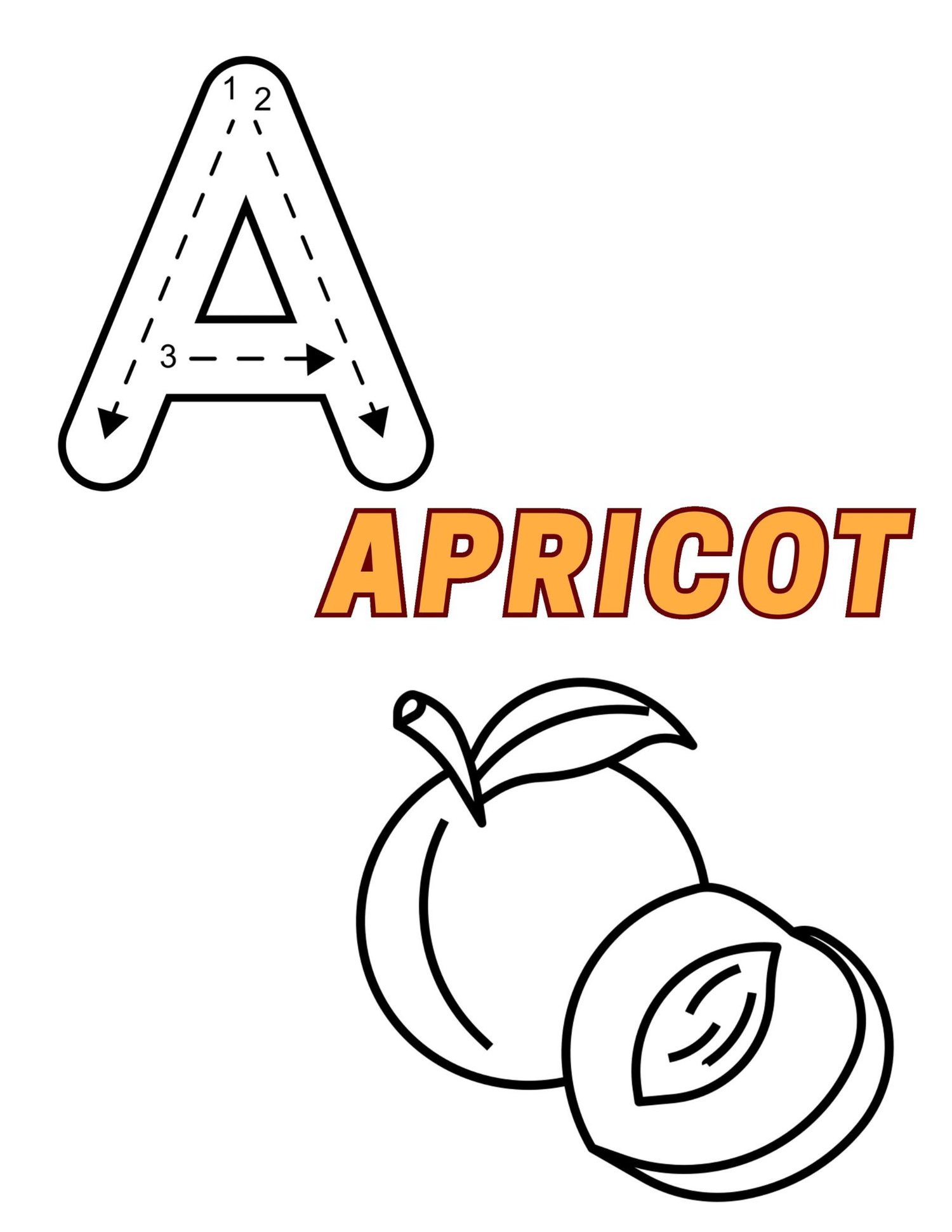 - Big uppercase letters A–Z with fruits