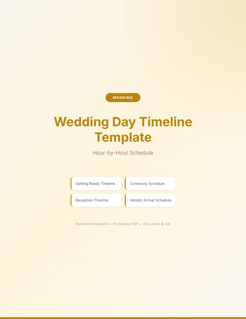 Wedding Day Timeline | Hour-by-Hour Schedule for Your Big Day | Printable PDF