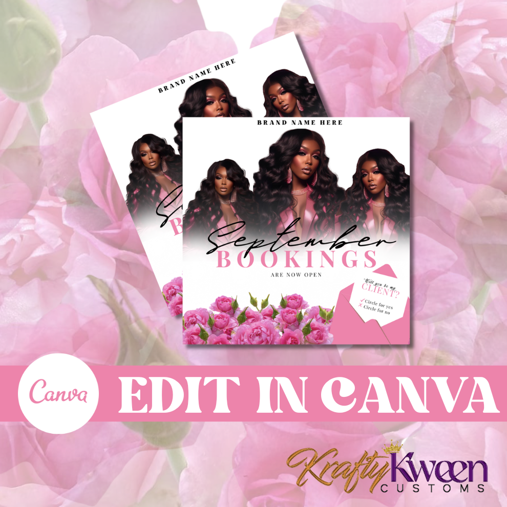 Elevate your business promotions with our versatile September Booking Flyer template, designed for any business type! Perfect for scheduling appointments or bookings for any month, this template is fully editable in Canva, allowing you to customize every element to suit your brand’s needs.