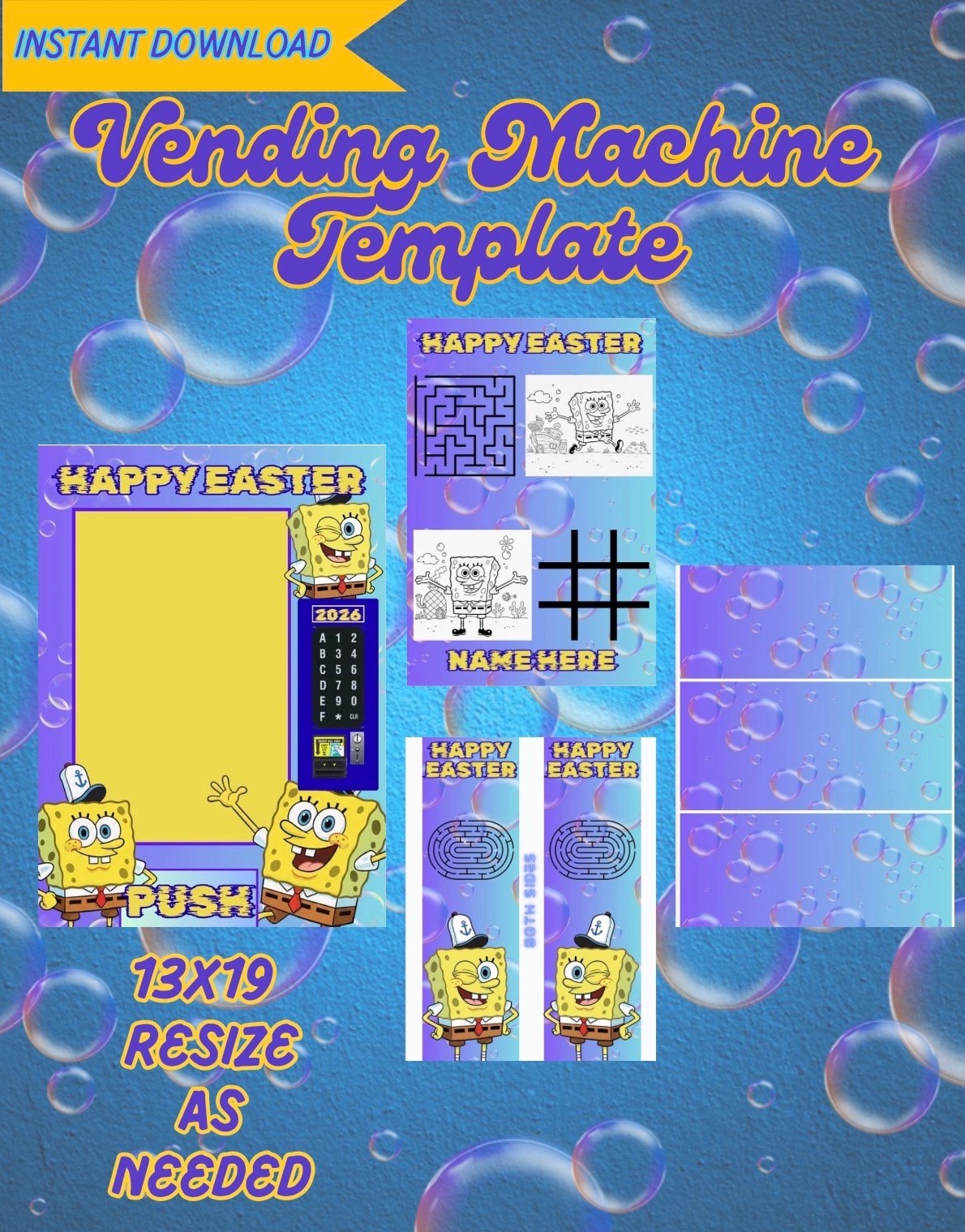 Easter Vending Machine Template | 13x19 | Editable Canva File | Sponge Theme DIY Party Favor Display