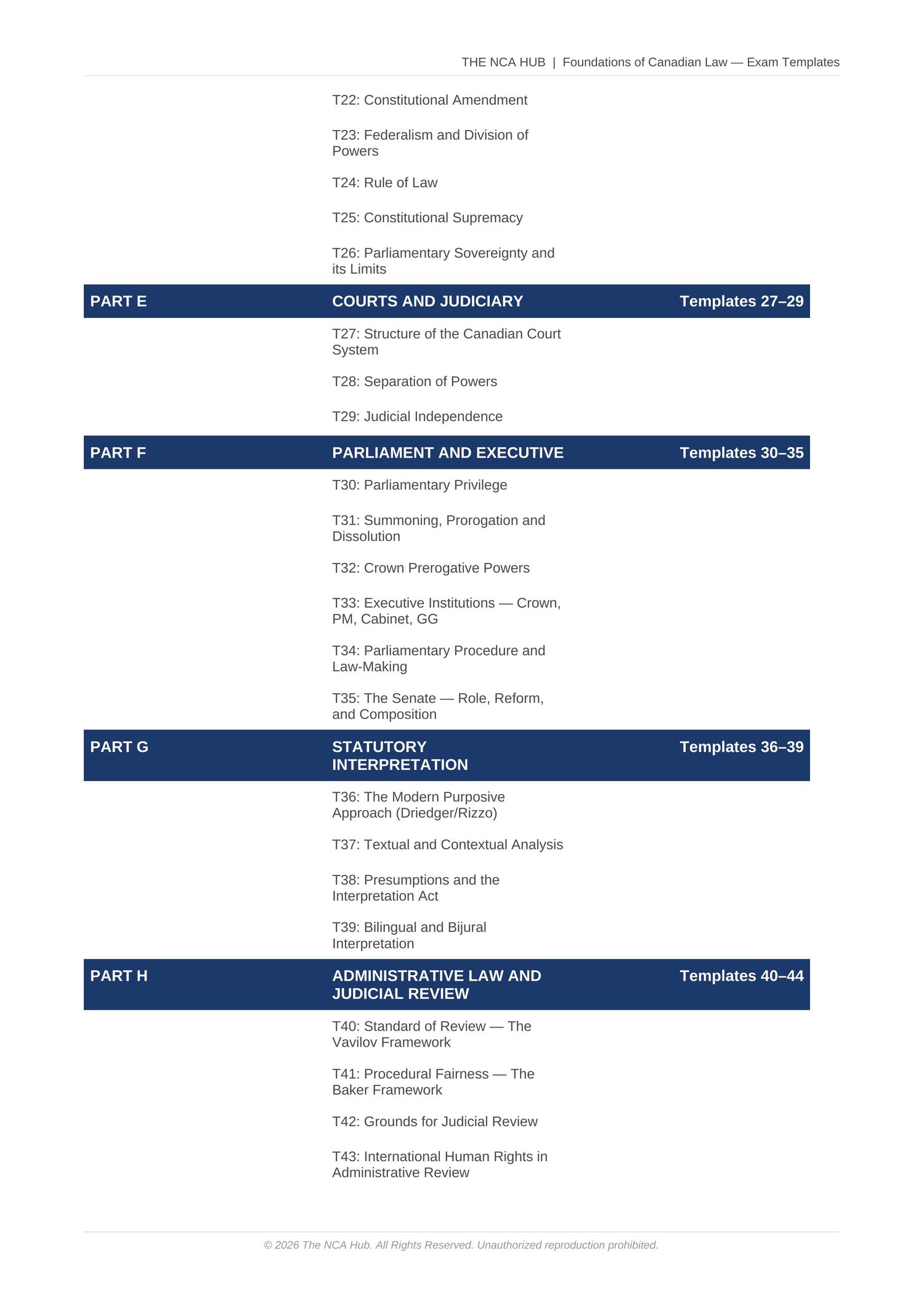 Fully aligned with the V8 2024 revised NCA Foundations of Canadian Law syllabus for the June 2026 sitting.