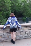 Pattern requires 1600 yards of Dream in Color’s fingering weight yarns (Smooshy, Smooshy with Cashmere, Jilly, Starry), 800 in main color and 800 in contrasting color. Recommended colors include Crying Dove and either Wicked Royal or Peacock Shadow.