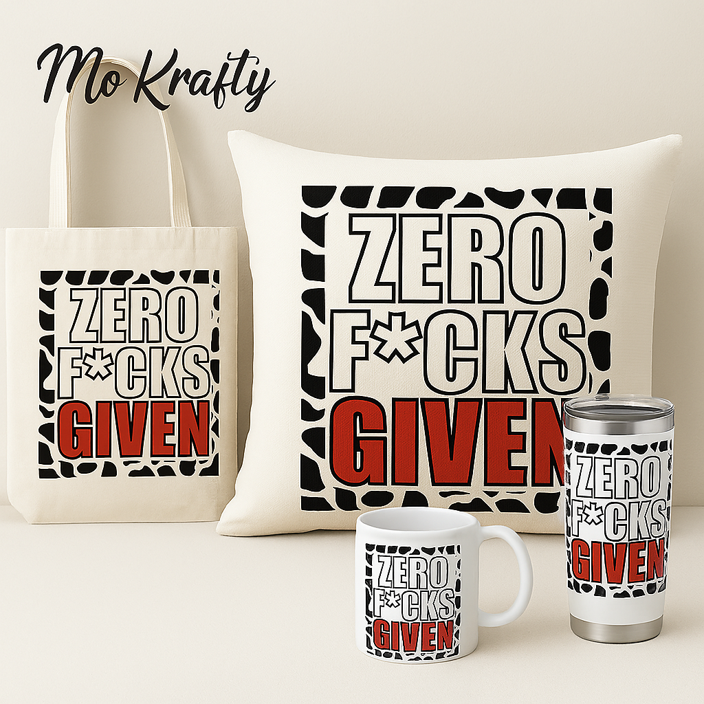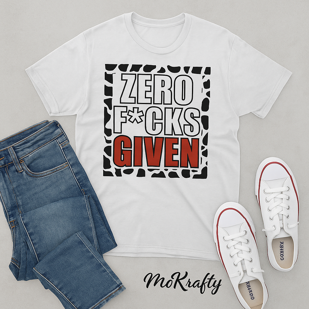 Say it loud with no apologies! This Zero F*cks Given digital design is dripping with attitude and bold style. Featuring a powerful mix of block typography, cow print border, and that red-hot āGIVENā emphasis, this design is made to stand outājust like you.
