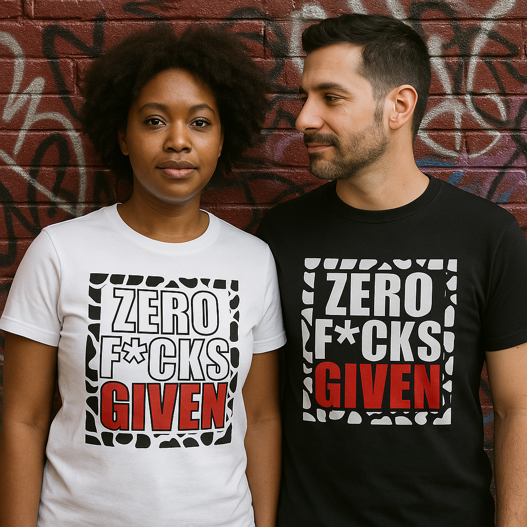 Whether youāre flipping shirts for your small biz or rocking your own unapologetic look, this graphic says it allāzero filters, zero worries, and ZERO F*CKS GIVEN.