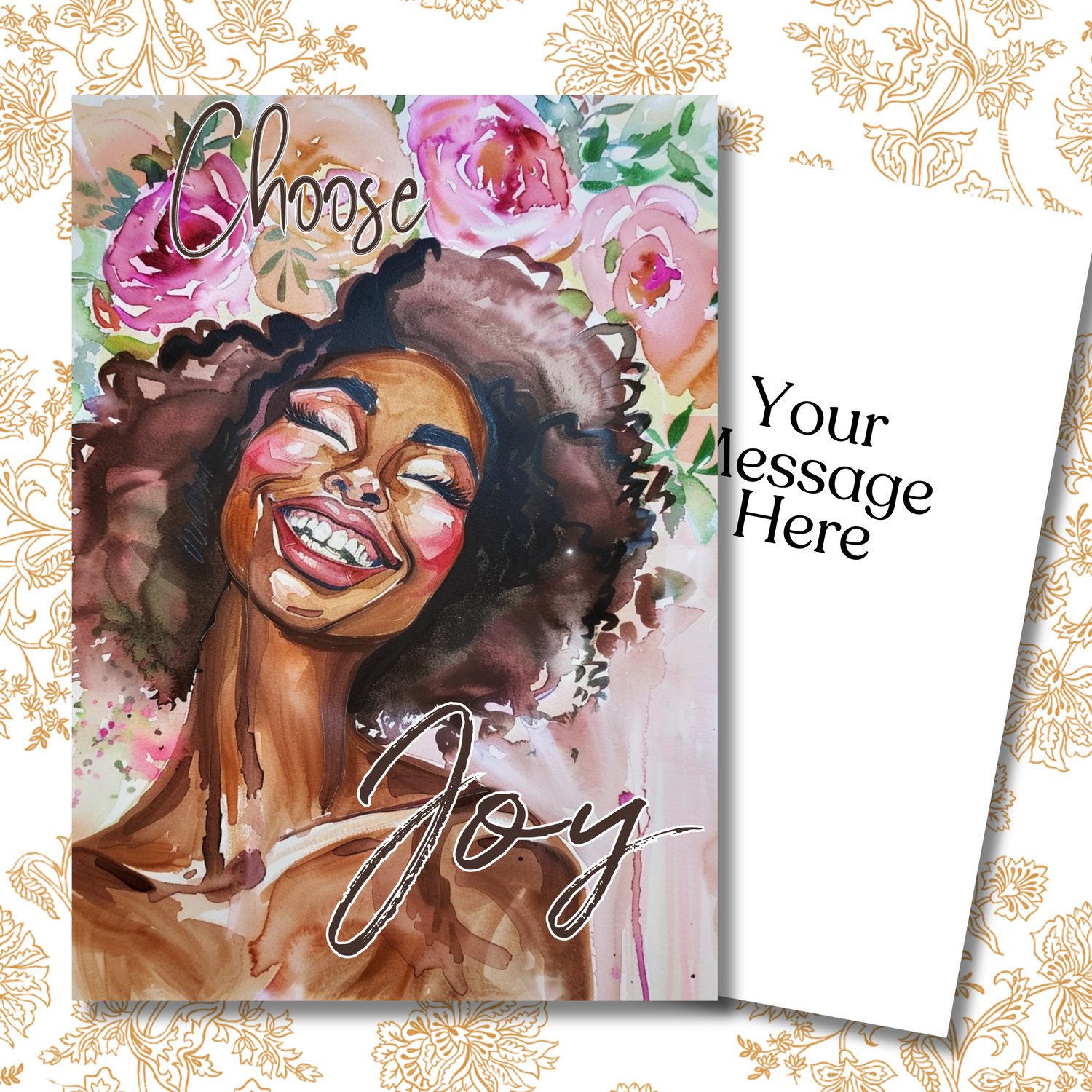 Blank Greeting Note Card | Black Girl Greeting Card. African American Celebration of friendship greeting card