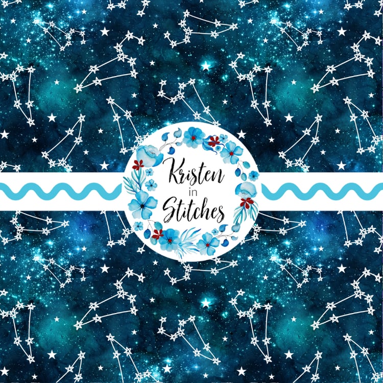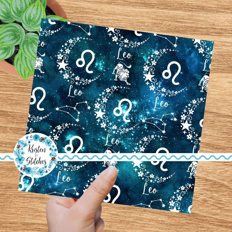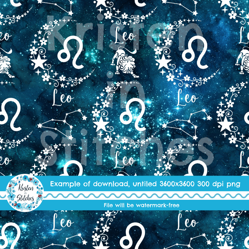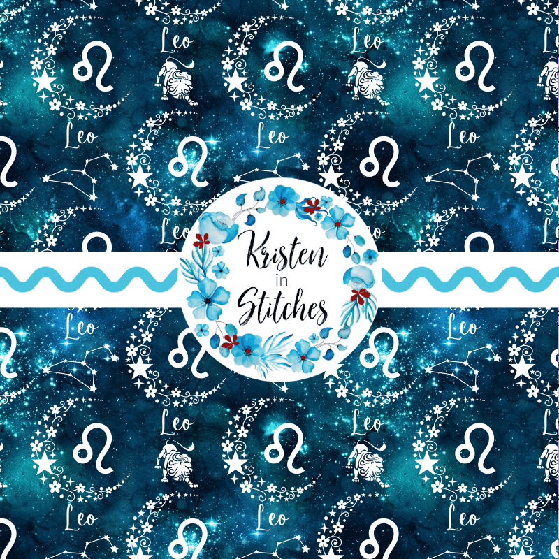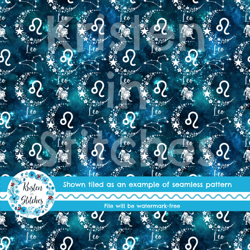 Leo Zodiac Symbols Seamless Pattern, Constellation, Horoscope, Teal Galaxy