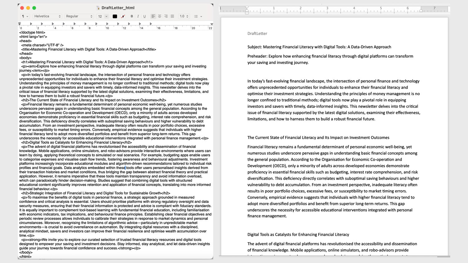 DraftLetter turns structured inputs (topic, audience, tone, key points) into a complete newsletter draft: