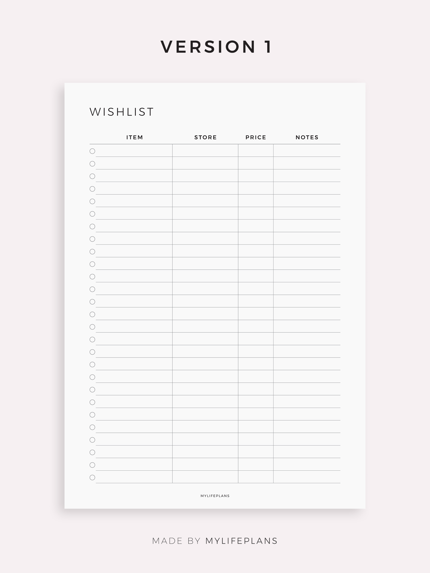 Simple Wishlist Template for Remarkable, Supernote, Kindle Scribe, Boox, Kobo