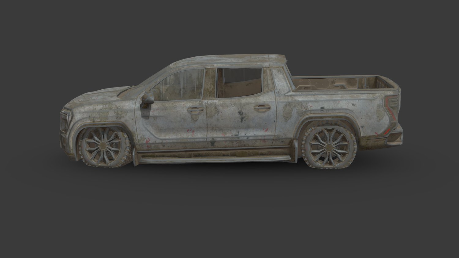 Highly detailed and realistic 3D models of damaged and abandoned modern ev pickup, perfect for creating apocalyptic or war-torn environments. It comes with high-quality textures and optimized polygons, ensuring both visual appeal and performance efficiency in your scenes. Ideal for game developers, filmmakers, and 3D artists