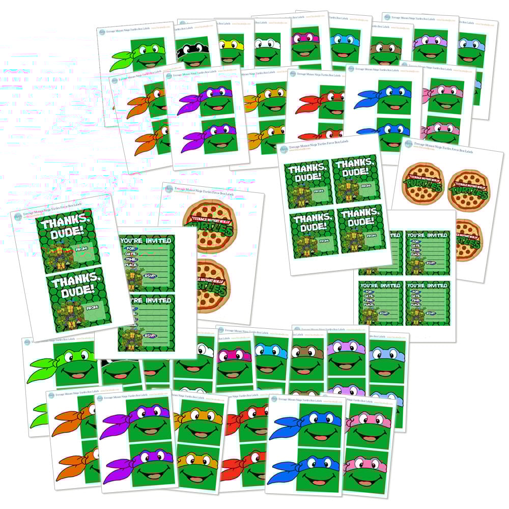 If you're hosting "Teenage Mutant Ninja Turtles" themed party and want to create cute TMNT pizza box party favors and invitations like ours, you'll need these printables to transform mini pizza boxes into something totally rad!