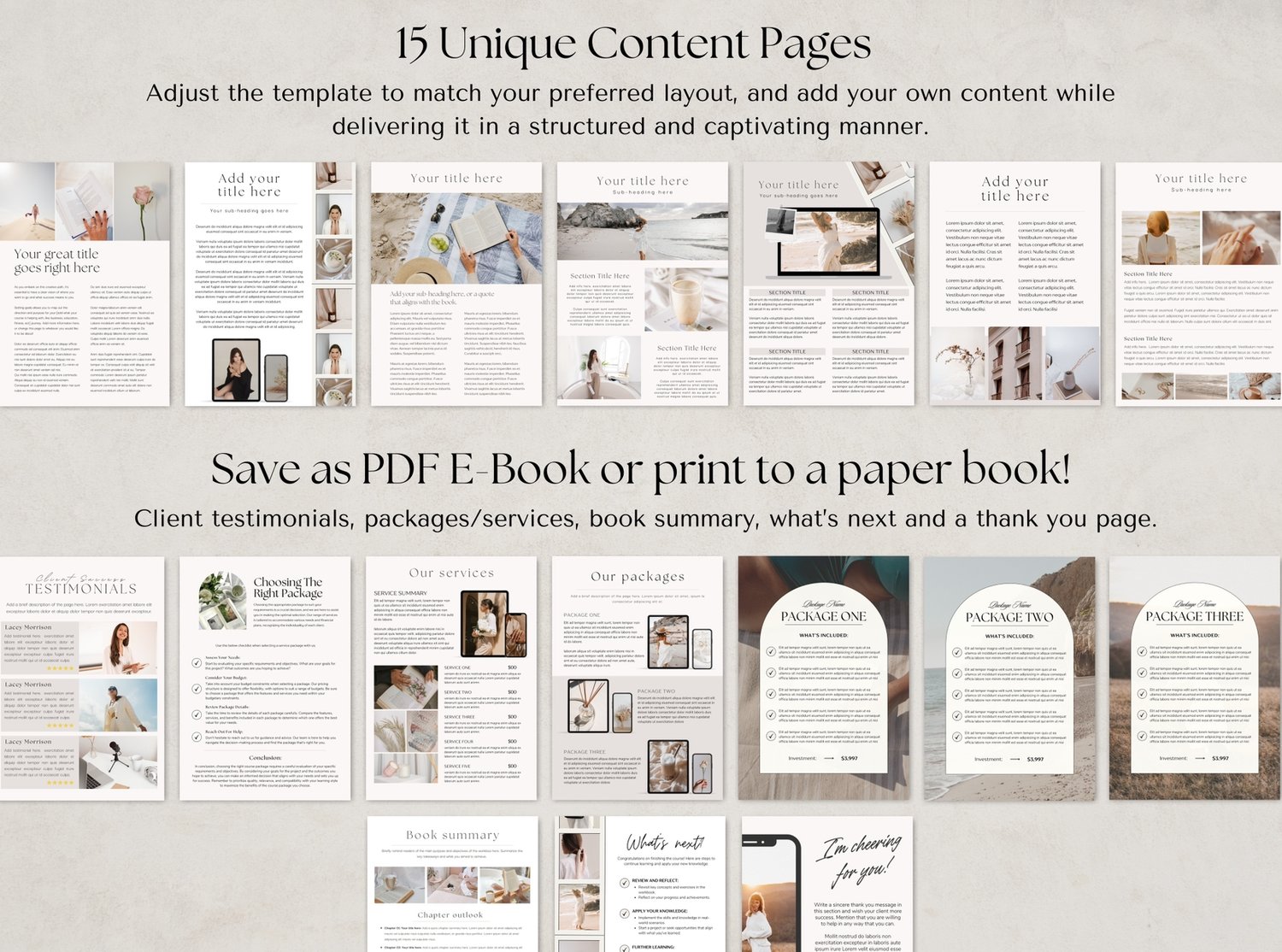 Unlock the potential of your coaching, mentoring, or small business with our meticulously crafted 52-page e-book template, designed for creators, coaches, small businesses, and mentors. This versatile e-book template is perfect for creating professional, engaging, and comprehensive e-books that can also be printed.