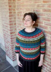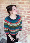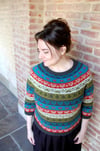 This is a pattern for a top down knit, with a circular yoke and 3/4 length sleeves, using the stranded colourwork technique. This jumper has a generous fit and may be worn with 4 - 12 in/10 - 30.5 cm positive ease.