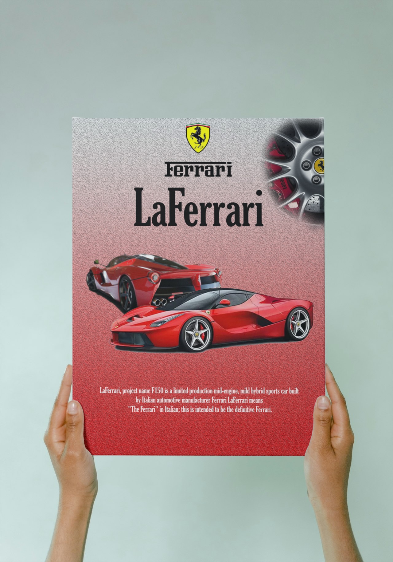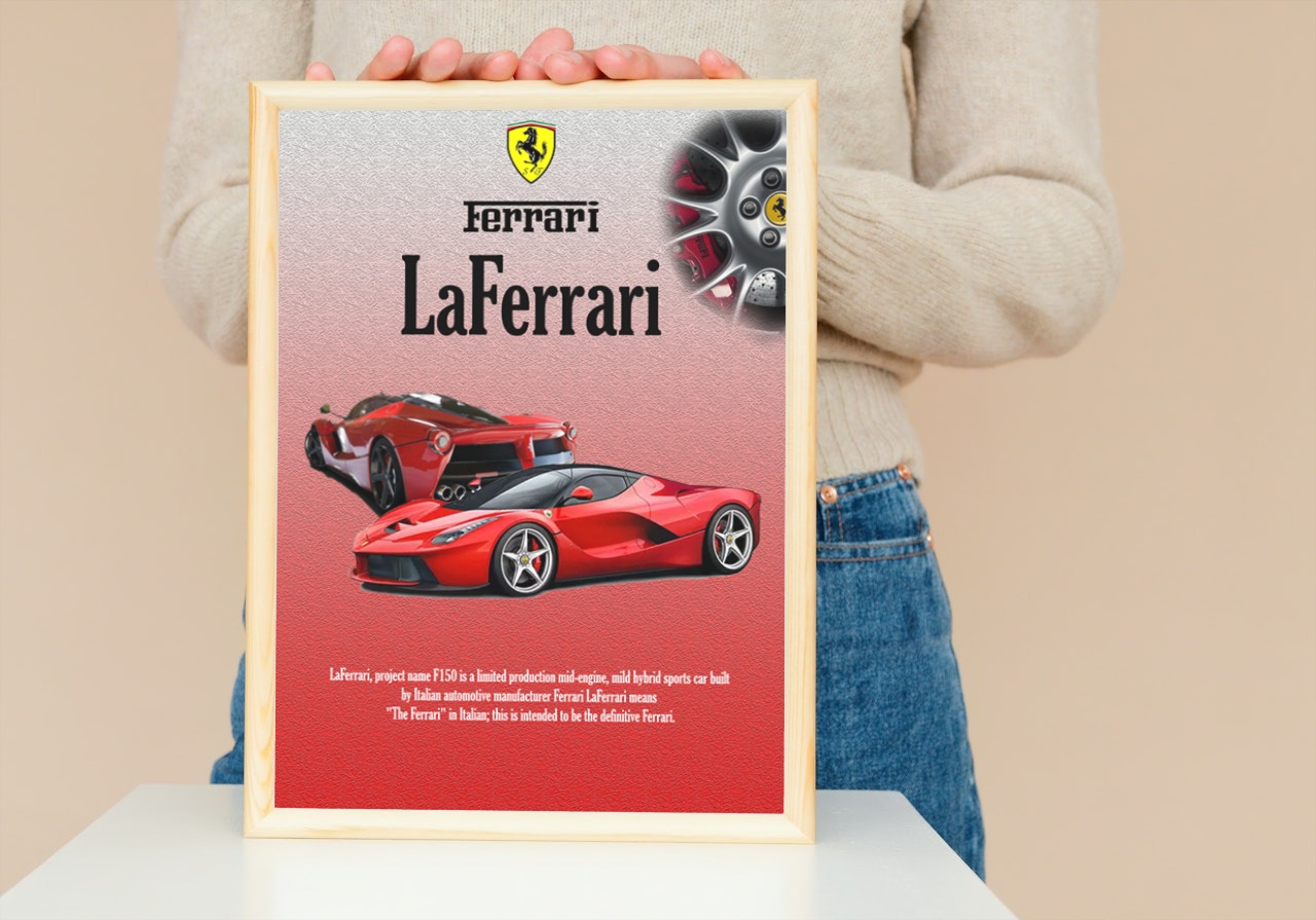 Featuring high-quality imagery and a dynamic design, this poster is perfect for any car enthusiast who admires the pinnacle of Ferrari engineering and innovation.