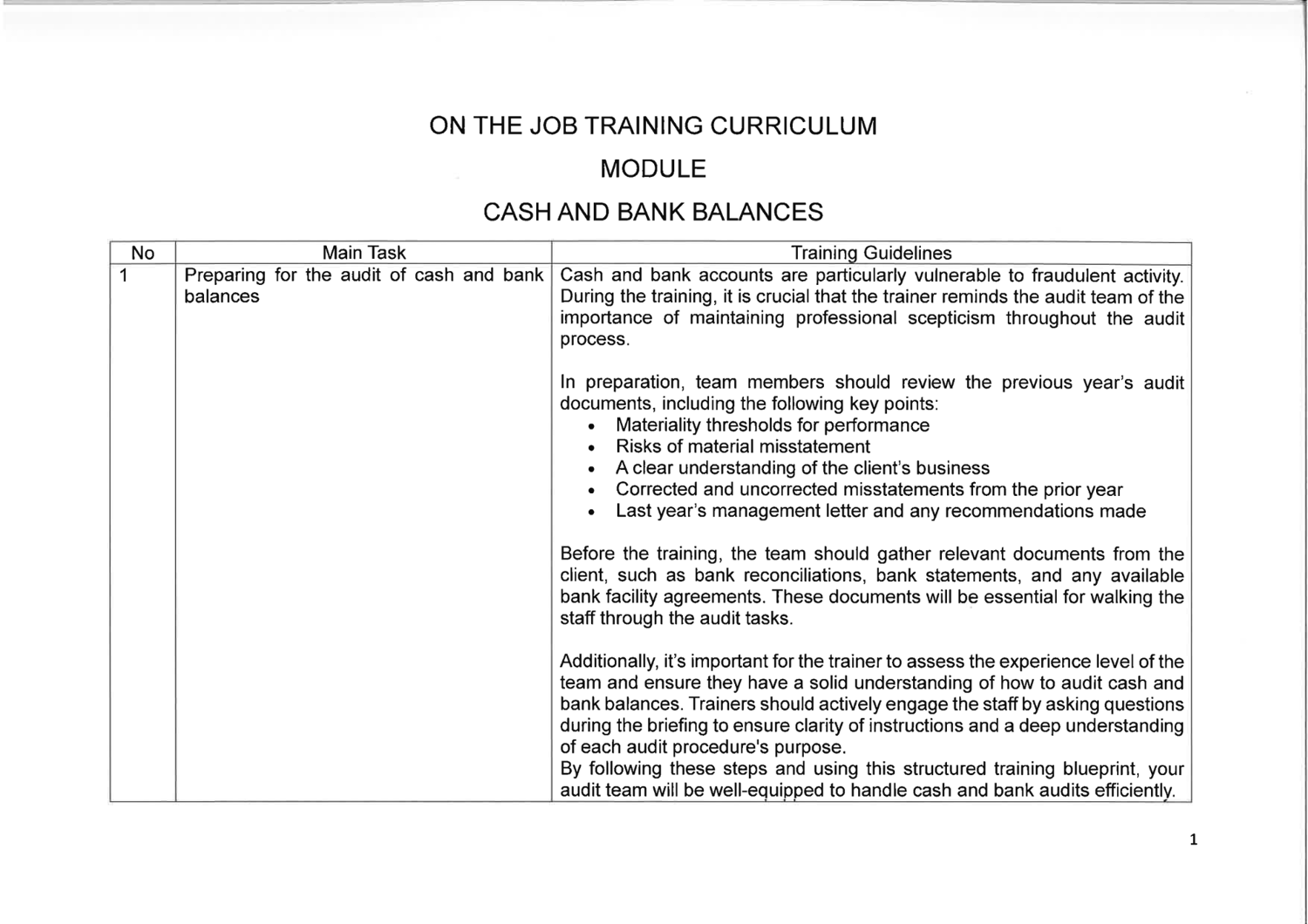 On The Job Training Guide - Audit Cash and Bank Balances