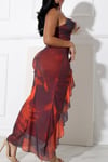 Red Ombre Print Sleeveless Ruffled Trim Formal Evening Party Prom Bodycon Maxi Slip Dress